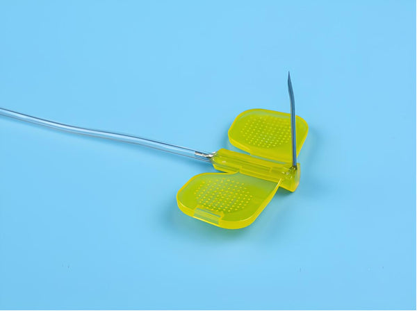 Questo tipo di ago è specialmente utilizzato per l’accesso ai cateteri venosi centrali totalmente impiantabili (CVAD/Port-a-Cath).
